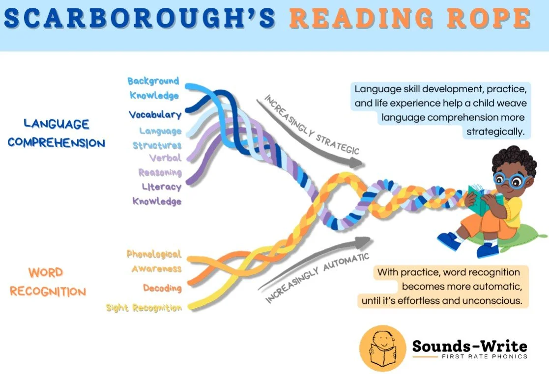 Adapted from Scarborough, H. S. (2001). Connecting early language and literacy to later reading (disabilities: Evidence, theory, and practice. In S. Neuman & D. Dickinson (Eds.), Handbook for research in early literacy (pp. 97-110). New York, NY: Guilford Press.